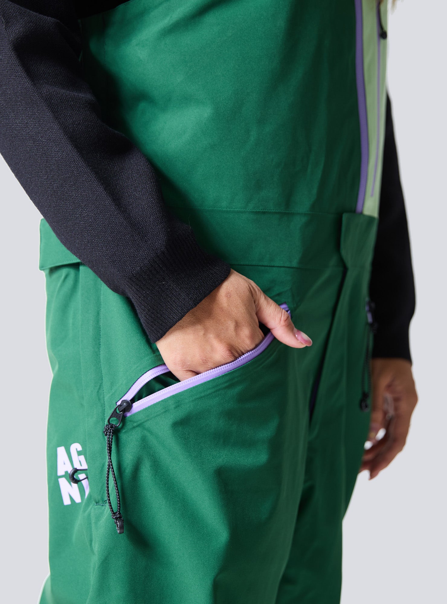 Every major zipper pull on our bib doubles as a removable hair tie, so you’ll always have one on hand when you need it. These zipper pulls can be quickly removed and used as hair bands, adding a practical, stylish touch to your gear. Perfect for those on-the-go moments when you need to tie your hair back on the slopes.