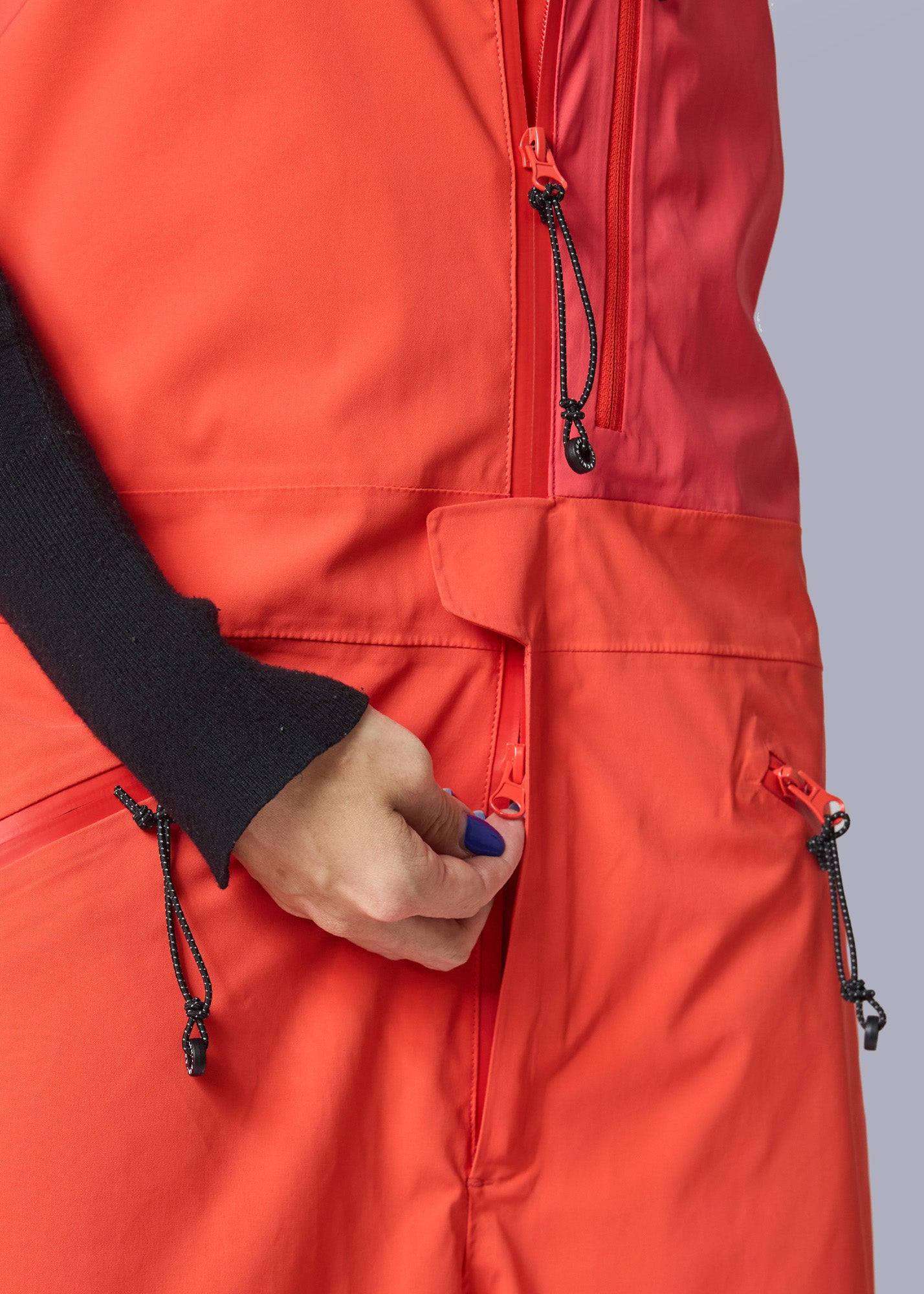 Our drop-seat feature ensures women can also enjoy quick and convenient bathroom access without having to fully remove the bib. This thoughtful design makes all-day wear comfortable and stress-free, especially in snowy or backcountry environments where restroom facilities may be limited.